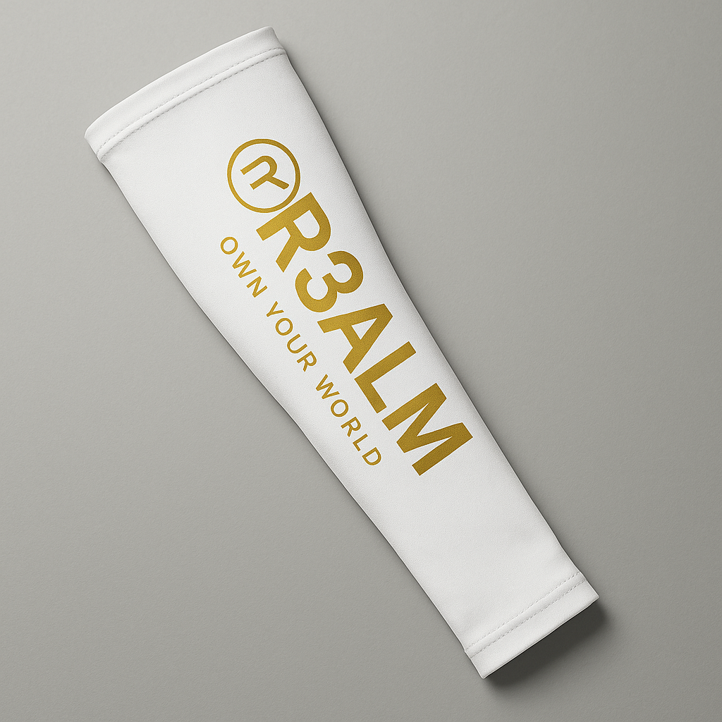 Elevate your game and comfort with the official R3ALM Performance Compression Arm Sleeve. Featuring the motivational “Own Your World” mantra in striking gold lettering on a clean white background, this sleeve is more than just athletic gear it is a statement. Designed for peak performance, this compression sleeve is ideal for athletes, gamers, cyclists, and anyone needing support and temperature regulation.